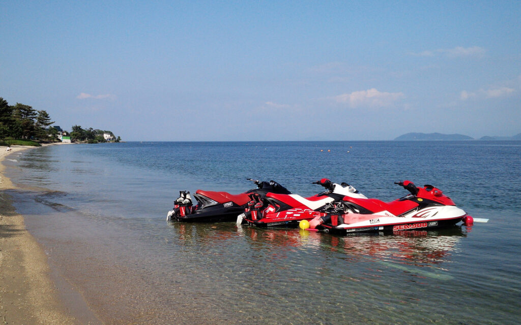 淡水である琵琶湖は海水と異なり水のベタつきや大きな波も無くクラゲの心配もありません。水がとても綺麗で、サワガニやアユの群れをを見る事ができるほどです。このような恵まれた環境で豊富なマリンアクティビティサービスを提供しています。