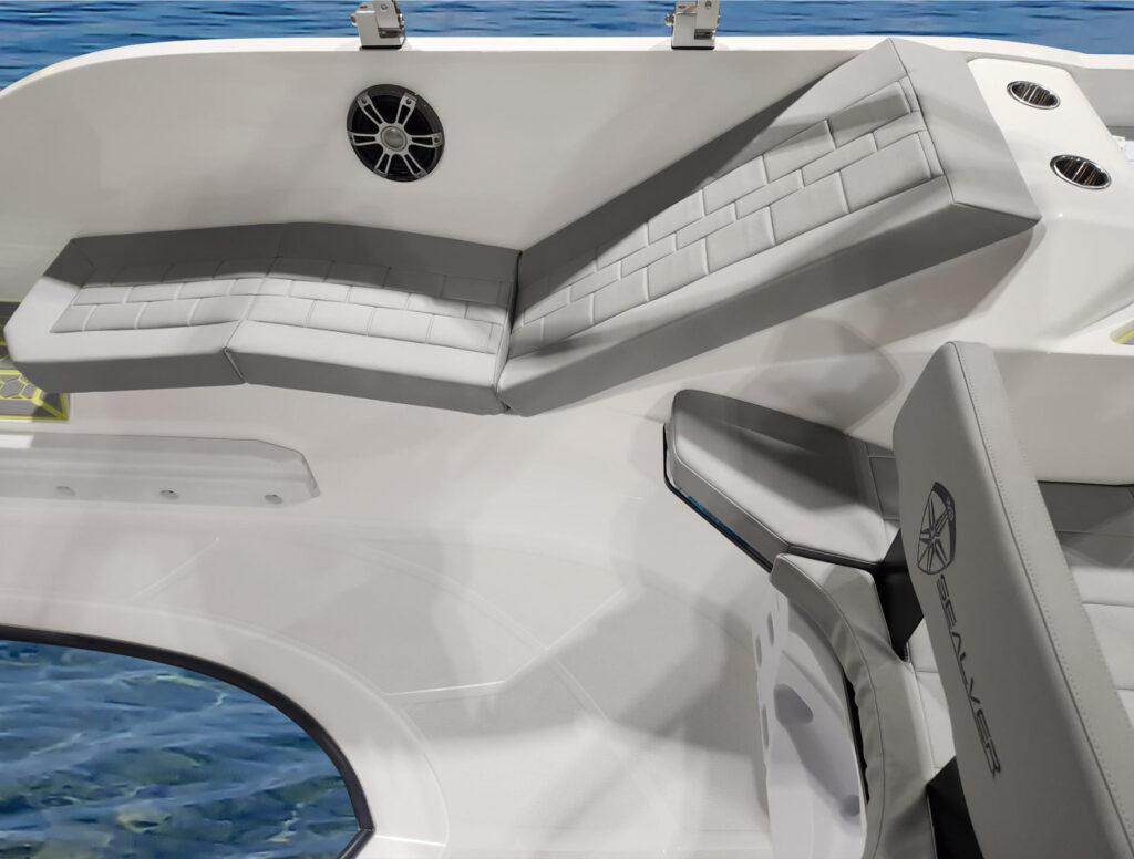 フロントにはWAVE BOAT最大のスペース、最大12名の快適さを追求したデザイン。